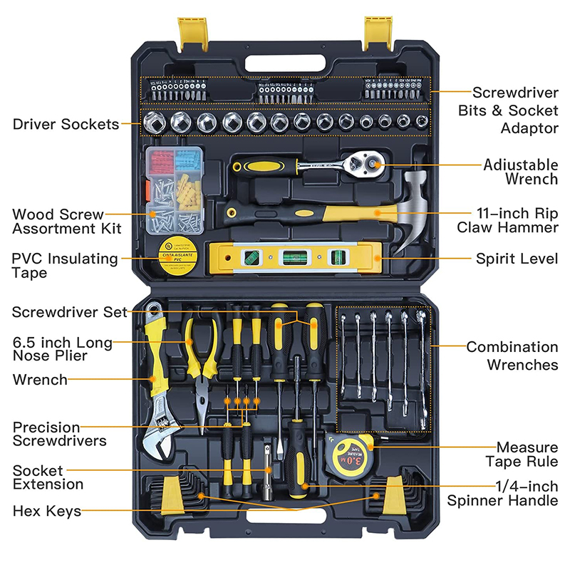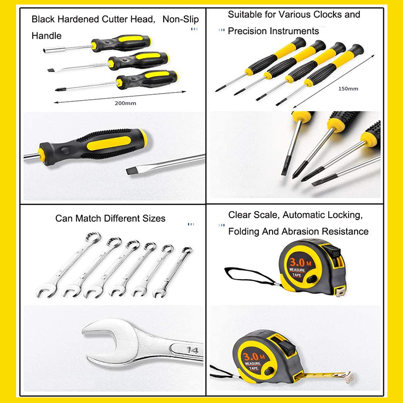 Ready stock in SG ,2-3days arrive your home! About Brand Name : KEELAT About Warranty: We are a local seller in SG. We provide a 12-month local warranty. Product failures can be replaced 1 to 1 within 6 months. The shipping fee for replacing the product within 1 week will be paid by the seller, and the shipping fee for more than 1 week will be paid by the buyer. ............................................................................ ............................................................................ Quality Assurance: - Industrial Heavy Duty Hardware Standard - 100% Brand New in Solid Box - Excellent Repairing & DIY Experience with Quality Tools - Include Hardware Box + 108 Pcs Tools Inside - 1 Box for All Tasks & Jobs - Easy to Carry & Keep Description: ✓ Household Essential Tools for Almost All Minor Maintenances. ✓ Multi-function for Home Improvement for Furniture Assembling, Lighting, Woodwork, Plumbing, Car Repairs. ✓ Hight Quality Materials with Heat Treated and Chrome Plated to Resist Corrosion. ✓ All Tools Meet or Exceed ANSI Critical Standards. ✓ Tools are Made from Durable Metal. ✓ Measuring Tape, Screwdriver, Combination Pliers, Digital Voltage Tester, Utility Knife,Claw Hammer, Insulation Tape, Adjustable Wrench. ✓ Perfect for Hammering, Measuring, Cutting, Screwing. Specification: Product size (L x W x H): 35 x 30 x 8 cm Package Weight: 4.1 KG Packaging Method: Paper Box + Bubblewrap + Waterproof Black Stretch Flim + Fragile Sticker Brand: HABO Number of Pieces: 108 Material: Chrome Vanadium CR-V Suitable Use: Heavy Duty / Industrial / Household Types: Ratchet, Wrenches, Sockets, Hand Tools, Etc Package: Box Application: Maintenance and Repair Works Package Include: 2 x INNER HEXAGON 1 x MEASURING TAPE 1 x FLATBLADE SCREWDRIVER 1 x SCREWDRIVER HANDLE 1 x CROSSBLADE SCREWDRIVER 1 x OPEN END WRENCH 1 x LEVEL EQUIPMENT 1 x CLAW HAMMER 1x RATCHET WRENCH 1 x BATCH HEAD GROUP 1 1 x BATCH HEAD GROUP 2 1 x BATCH HEAD GROUP 3 1 x SOCKET ROD 1 x CLOCK SCREWDRIVER 1 x NEEDLE NOSE PLIERS 1 x ADJUSTABLE WRENCH 1 x ELECTRONIC PLASTERS 1 x EXPANSION TUBE FULL SET 1 x SOCKET SET &ETC