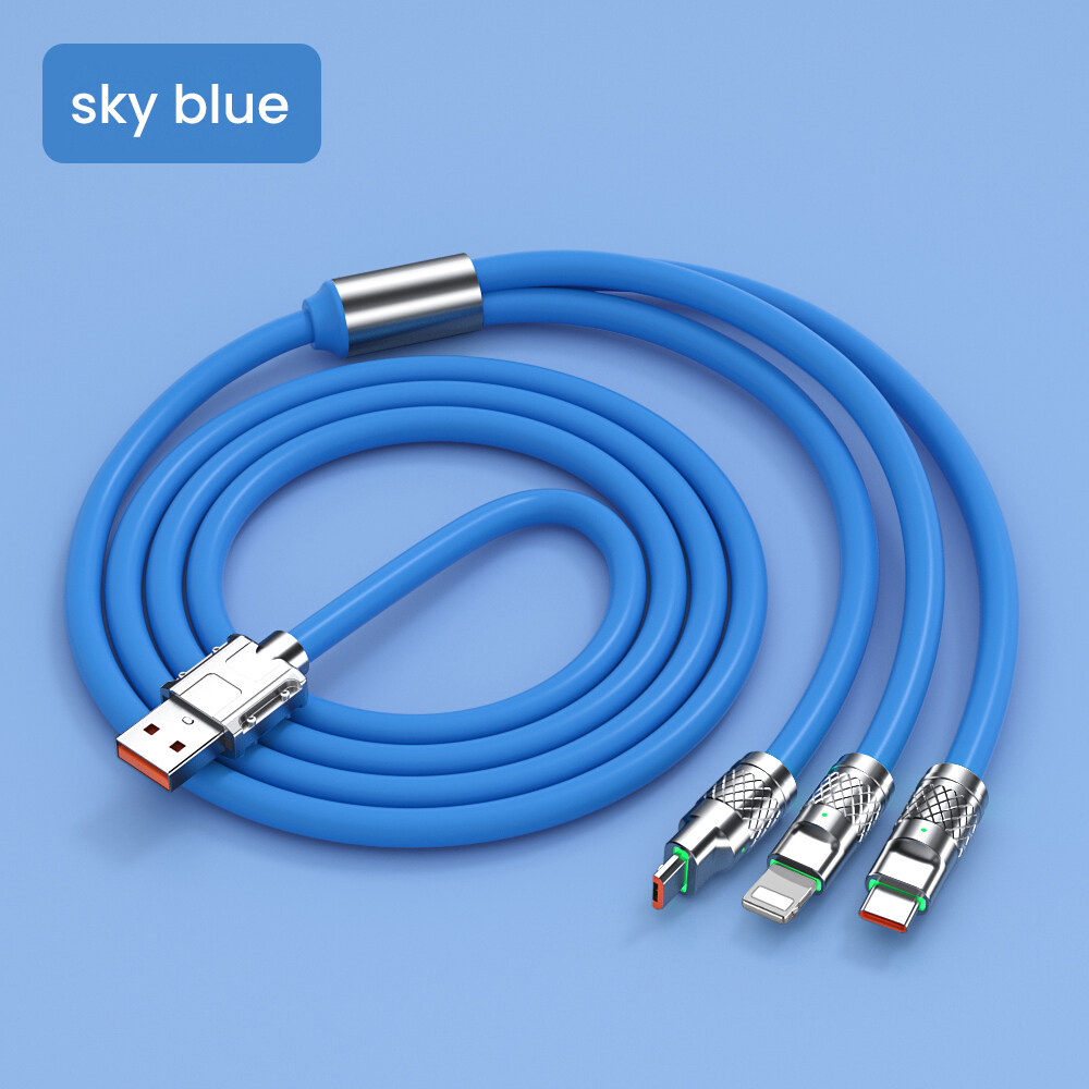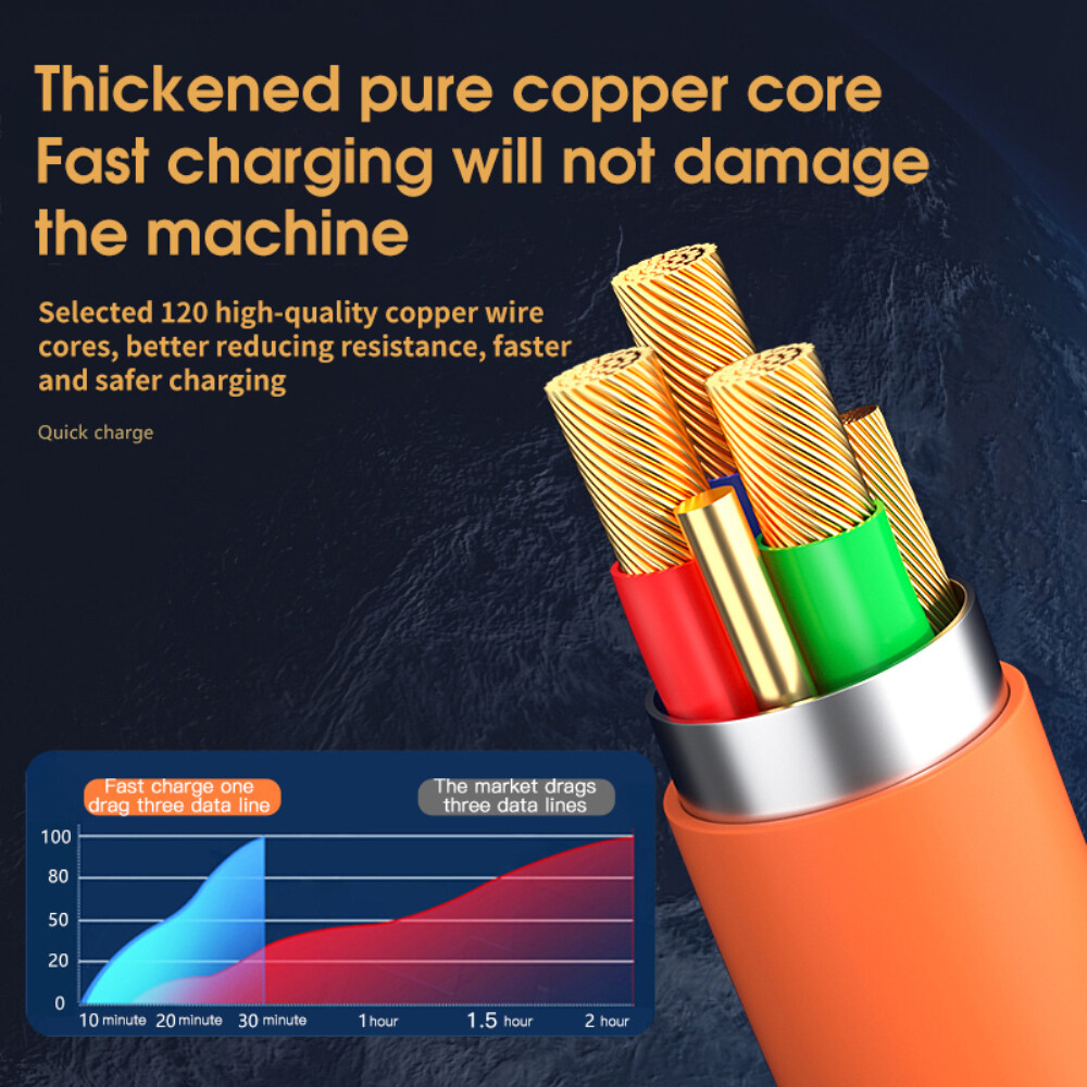 Doudoulie 3 In 1 120w Fast Charging Cord For I-Phone Huawei Micro USB Type C Charger Cable Multi Usb Port Multiple Usb Charging Cord