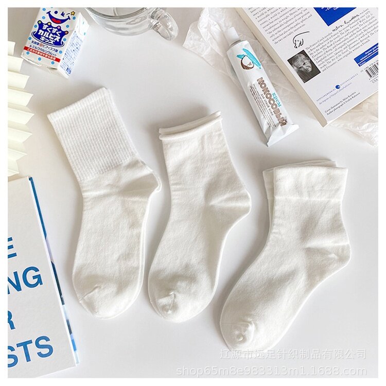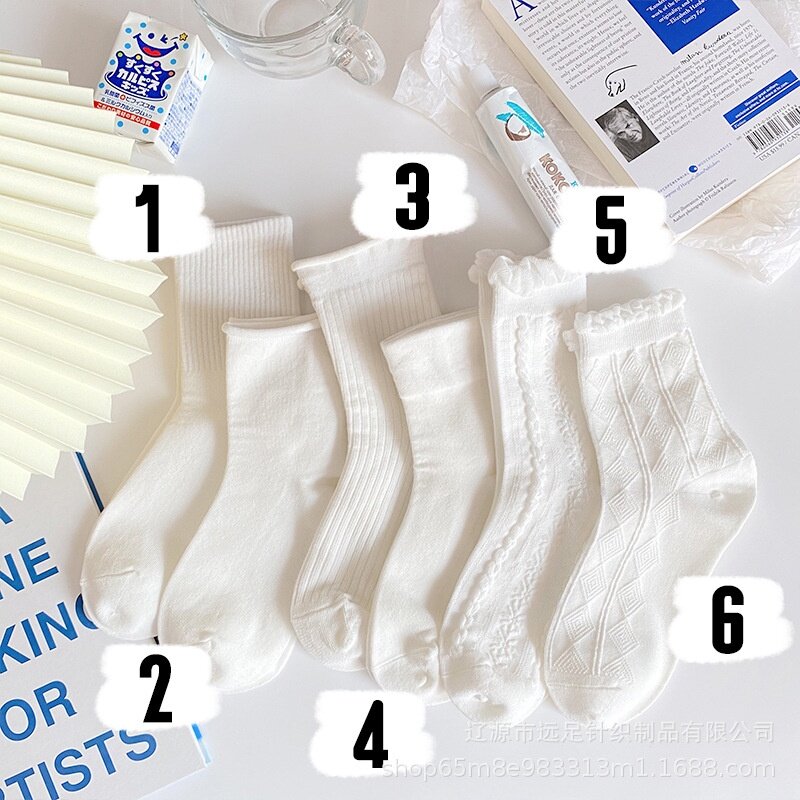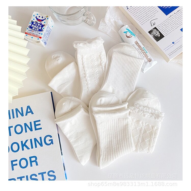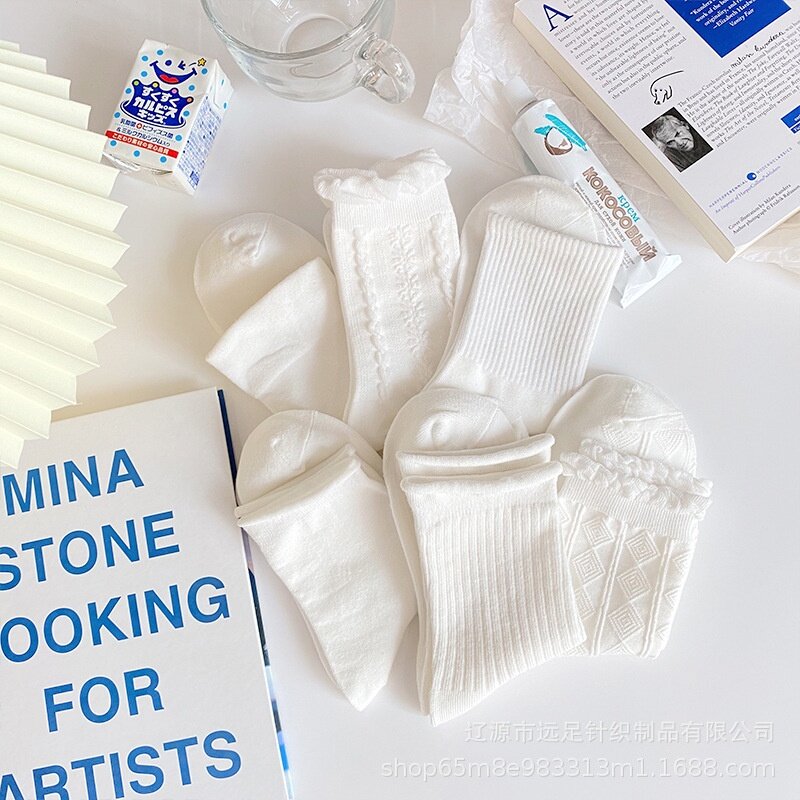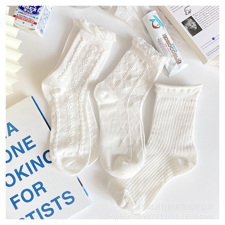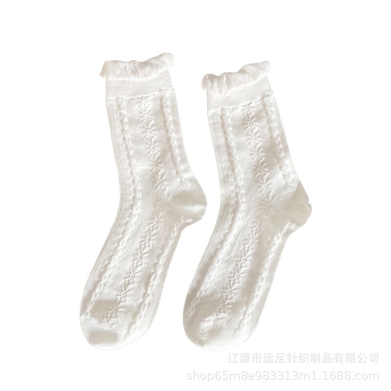 Loita Pure White Socks Women Mid-tube Socks Cute Japanese Bubble Mouth Lace Stockings JK Uniform Wild Socks
