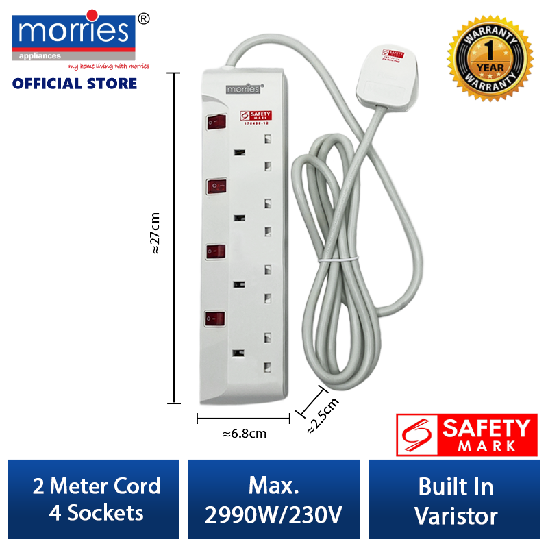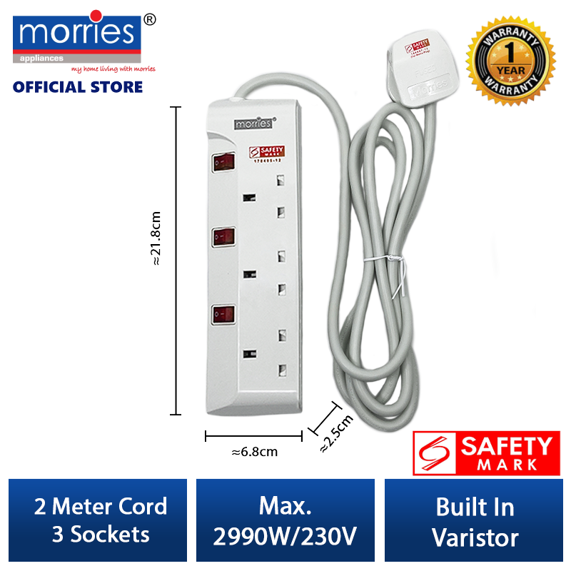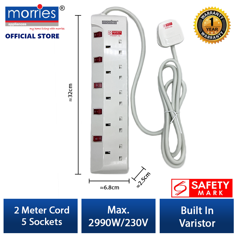 Morries 2M 3/4/5 Way Extension Cord (With Surge)