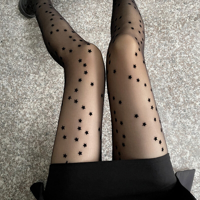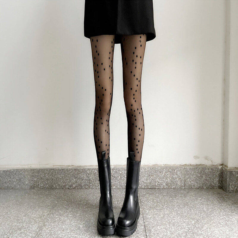 Women Sexy Tights With Patterned Tattoos Pantyhose Inscriptions Dots Pattern Ladies Thin Long Black Stockings