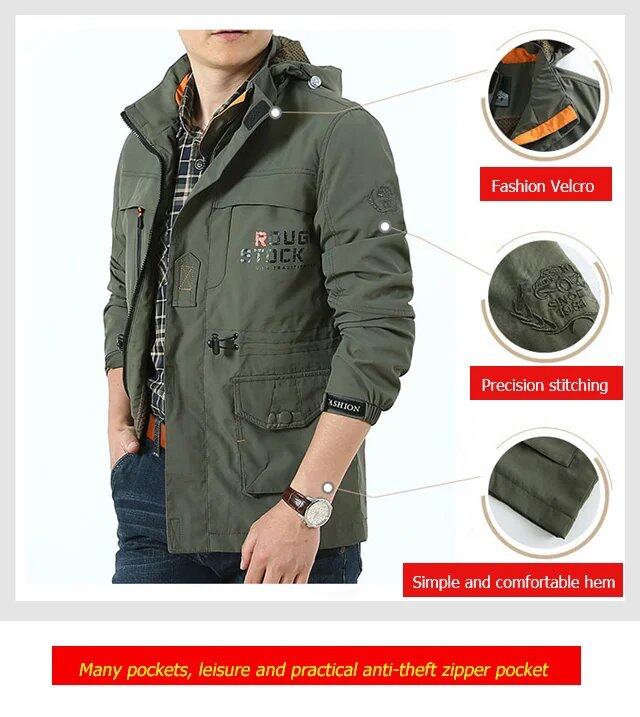 Fuguiniao Men's Bomber Jackets Casual Male Windbreaker Jacket 6XL Hooded Jacket