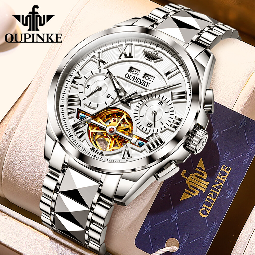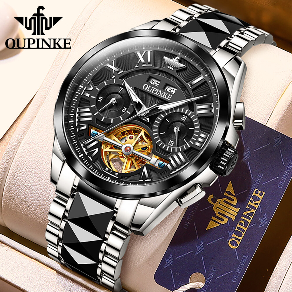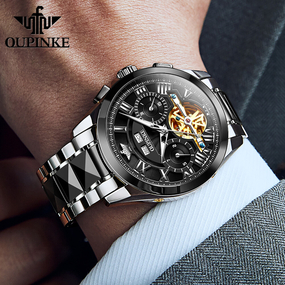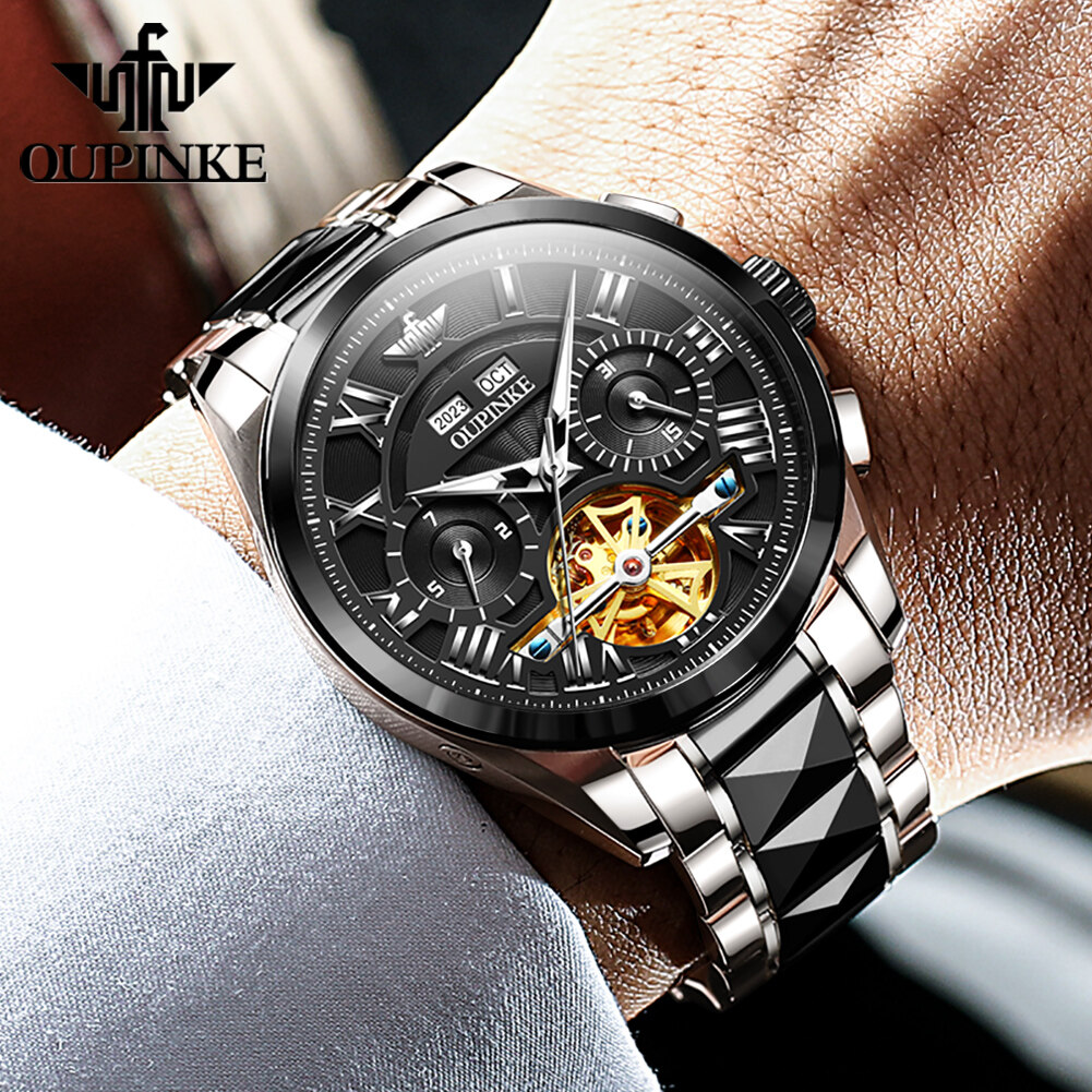 2023 luxury new official authentic brand men's watch waterproof multi-functional automatic mechanical watch fashion leisure hollow out luminous stainless steel watch as a gift for boyfriend