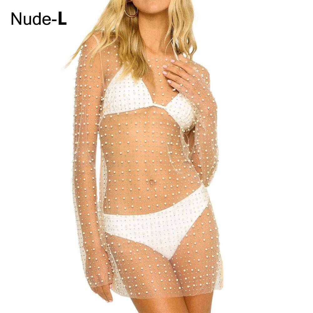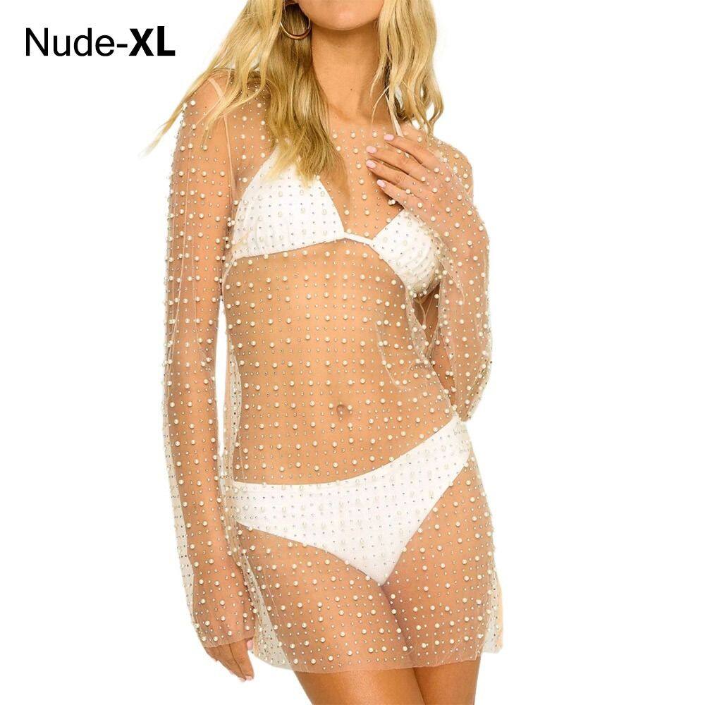 Made from sheer mesh material, our Women's Cover Up Dress has a comfortable fit and it's perfect for any body type. With its Pearl Rhinestone detailing, this Beachwear will make you feel like the ultimate queen as you strut your stuff by the water.