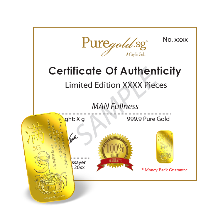 Puregold 5g 满 Man (Fullness) 999.9 Pure Gold Bar