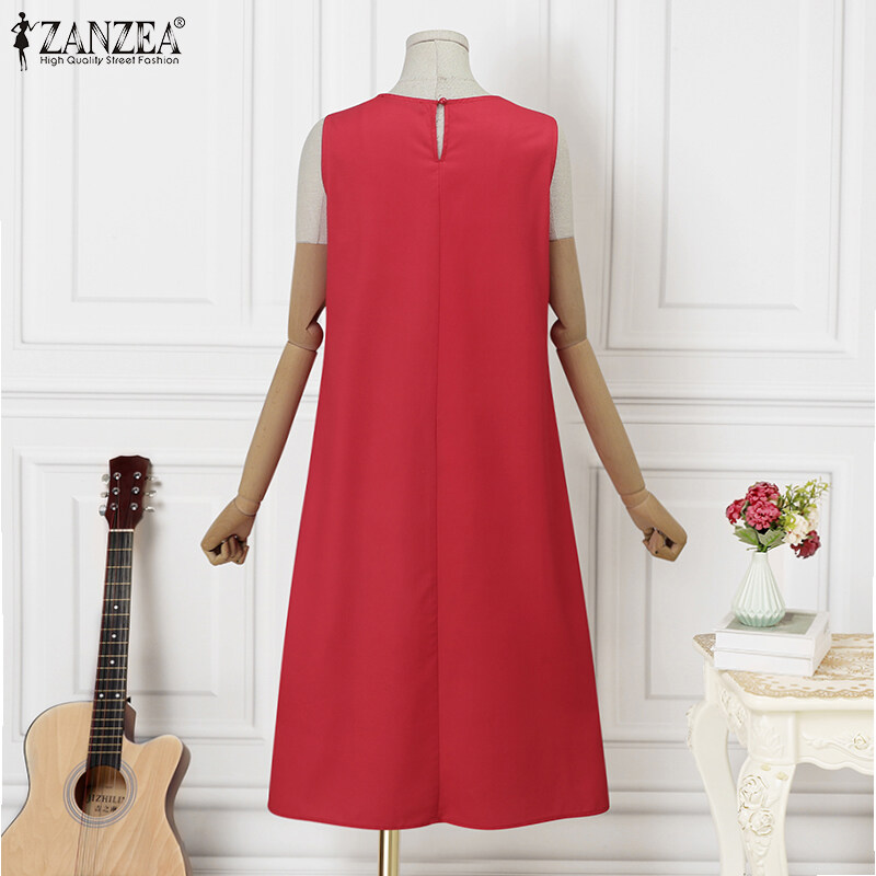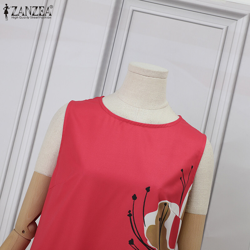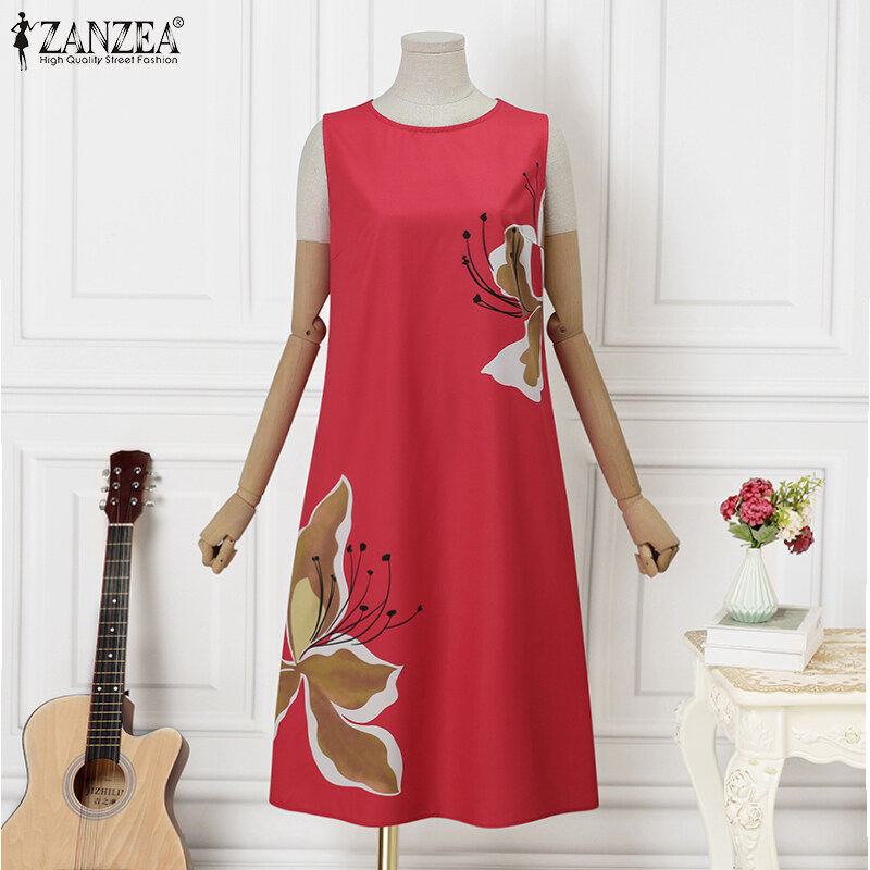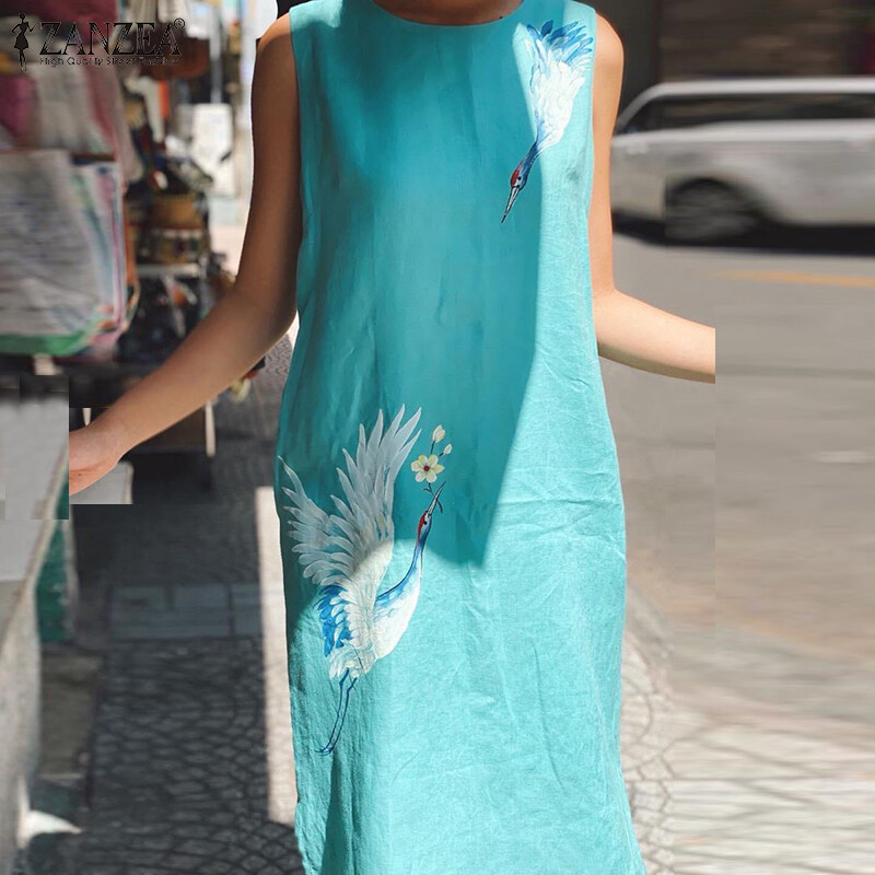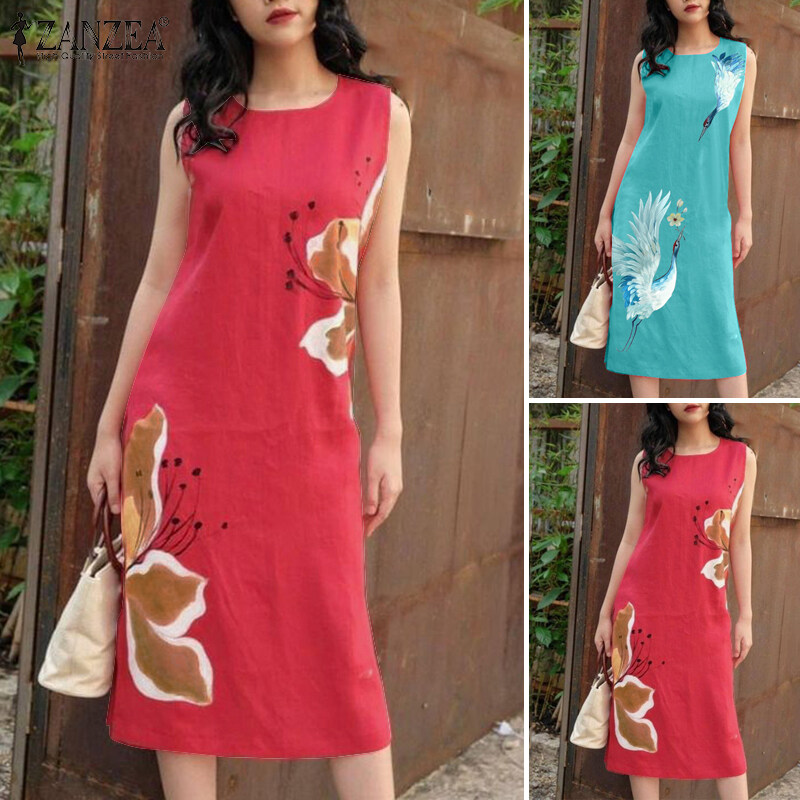 MOMONACO ZANZEA Korean Style Women's Elegant Round Neck Sleeveless Dress Back Button Printed Tank Dress #11