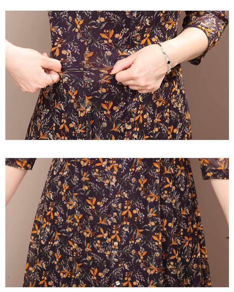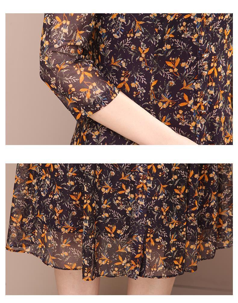 Dress Women Floral Print Elegant Turndown Collar Summer Female Clothing Slim All-match Casual Button Midi Dress Robe