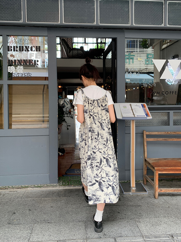 Style: A- line dress sweet floral print midi dress Spaghetti Strap dress