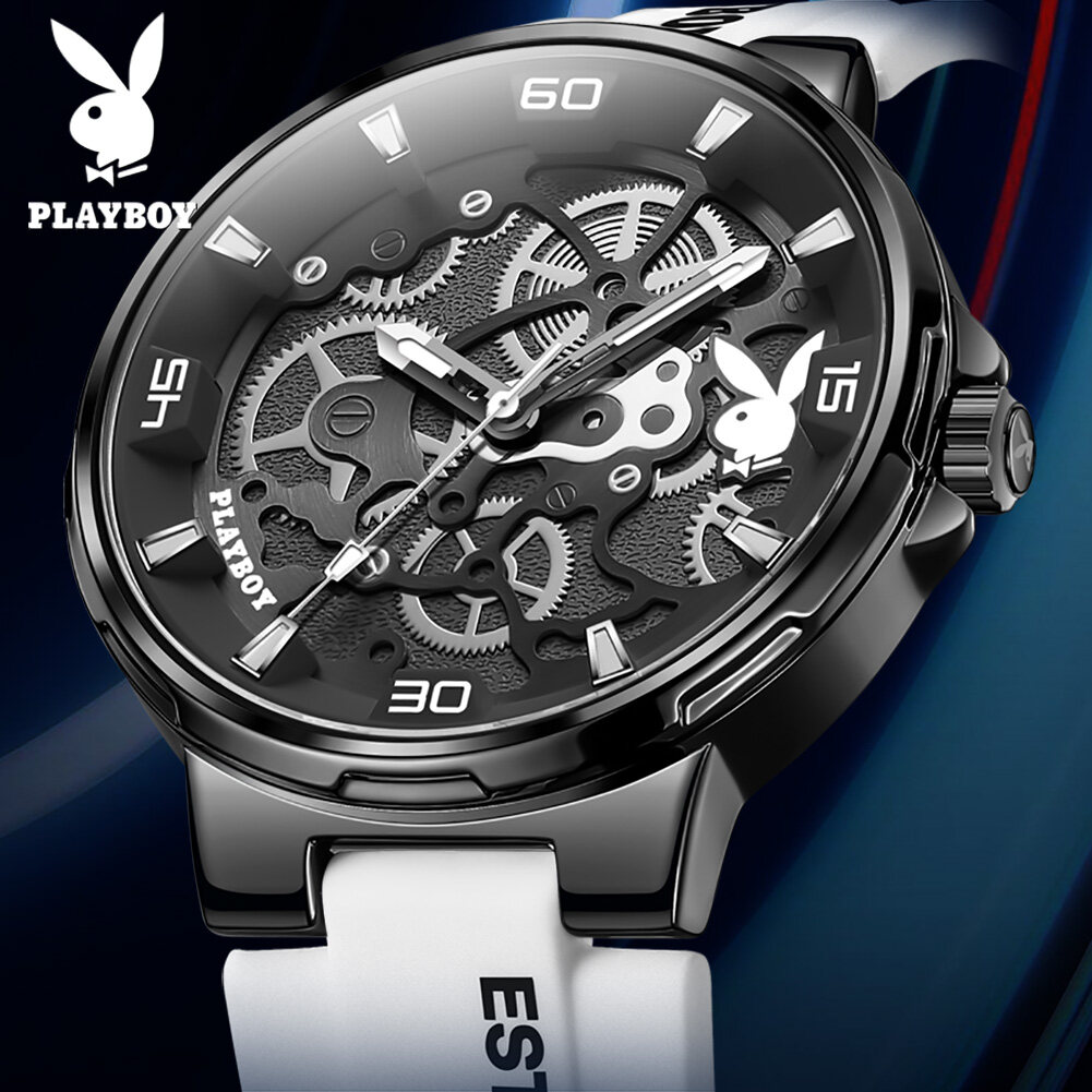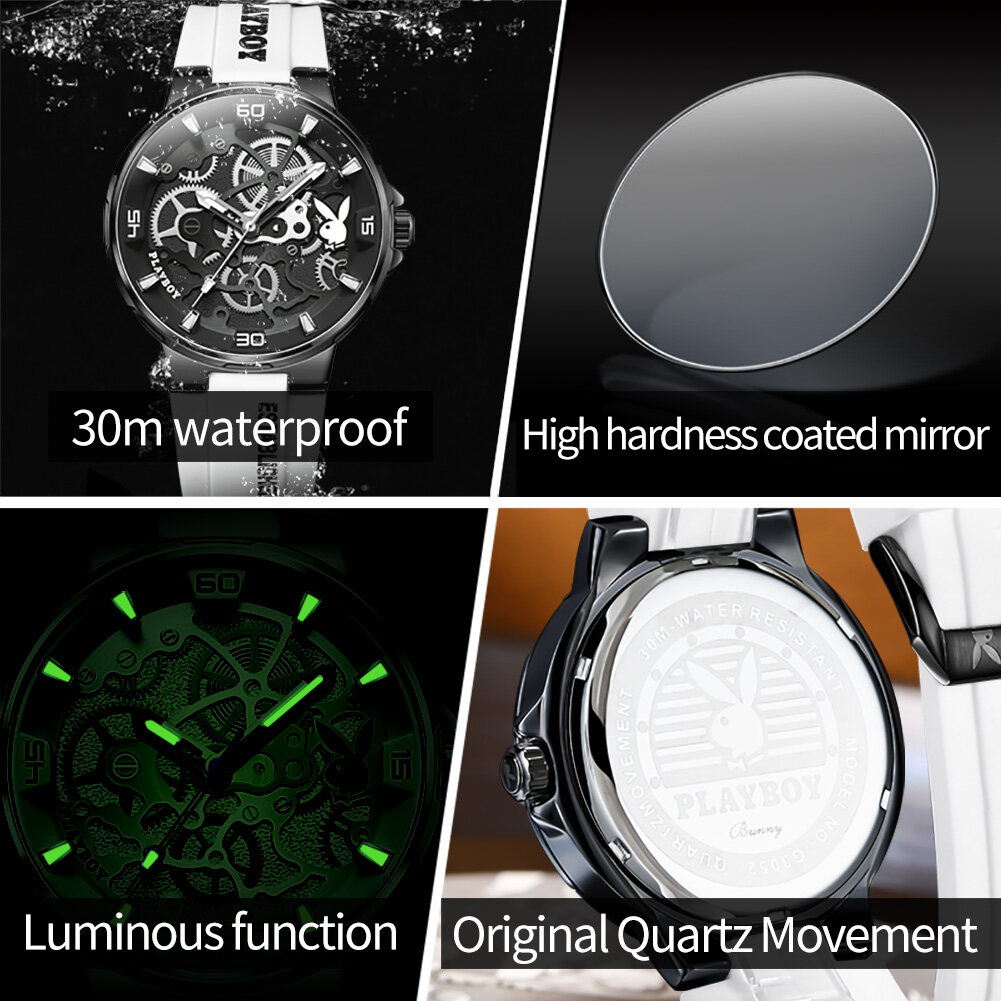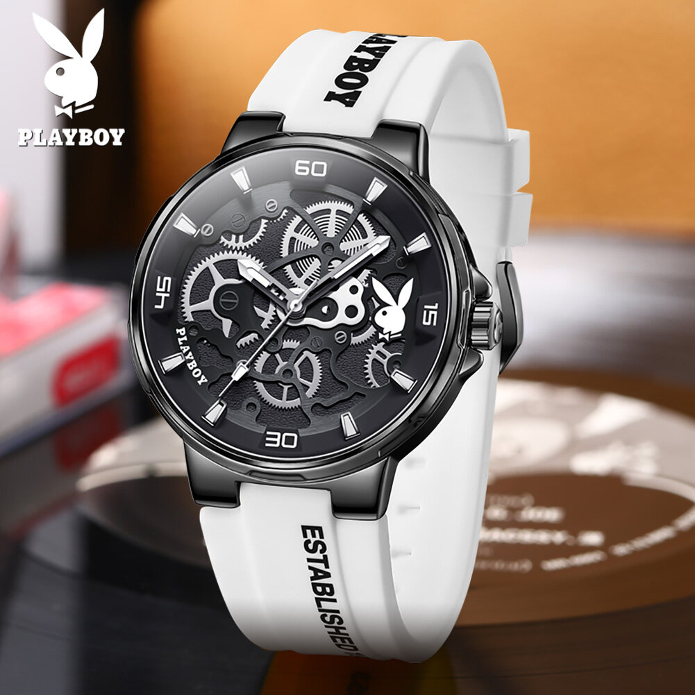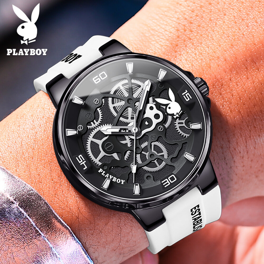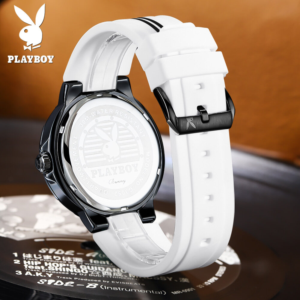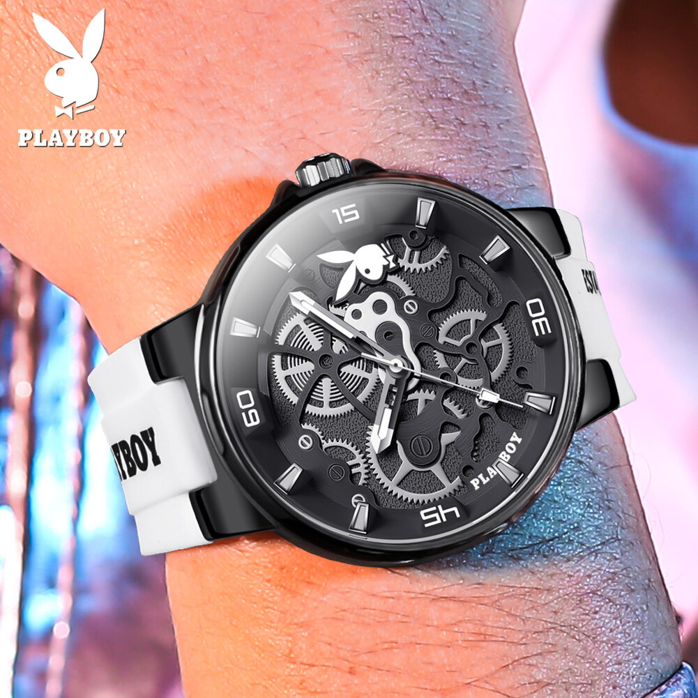 PLAYBOY Watch For Men Original Waterproof 2023New Watch Luminous White+Black Silicone strap Fashion Mens Watch Quartz