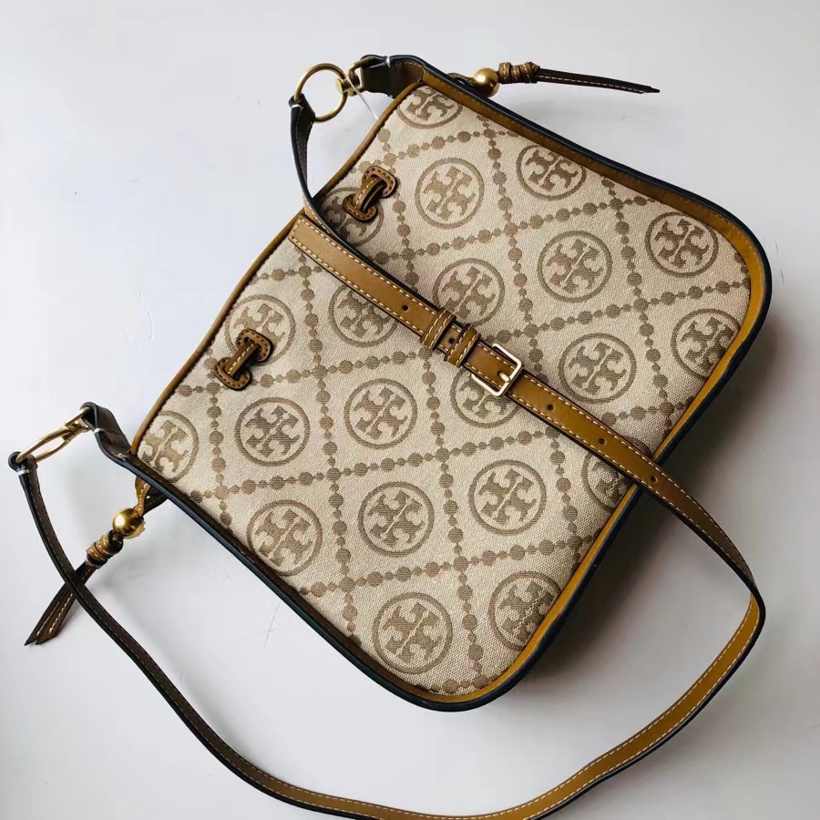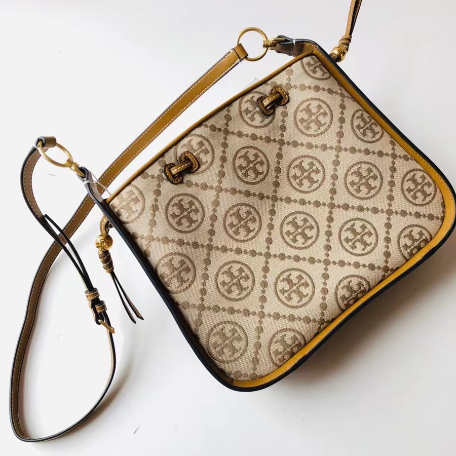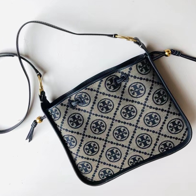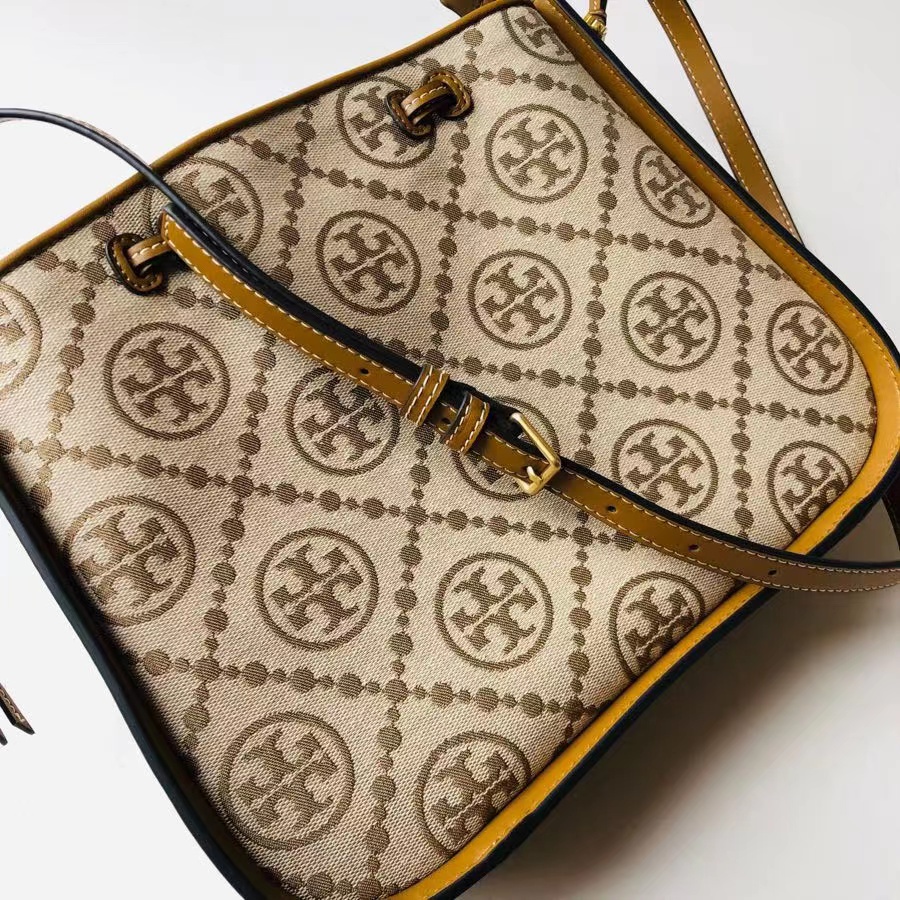hot sale authentic tory burch bags women Tory Burch T Monogram Two Colors Jacquard Drawstring Shoulder Bag Crossbody Bag tory burch official store