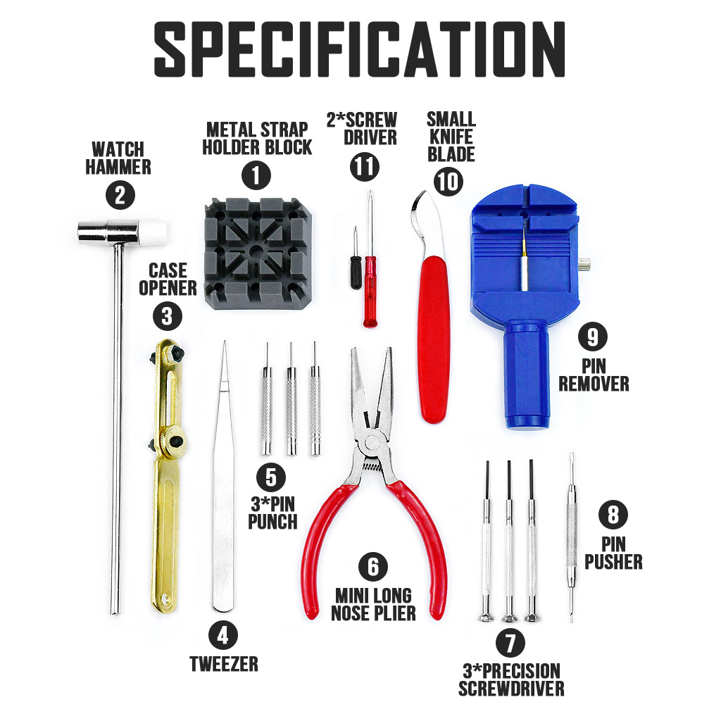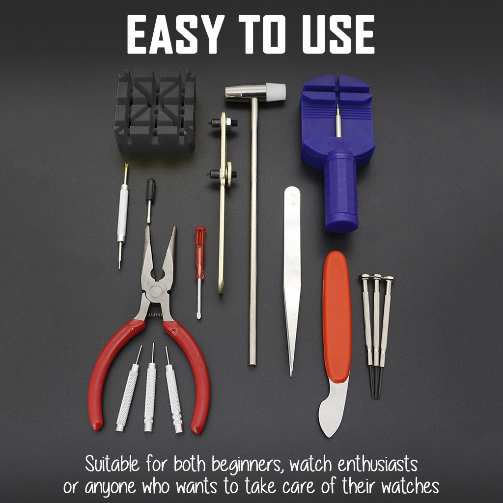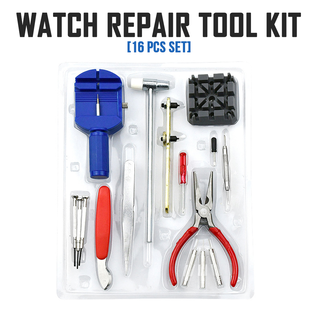 SG Watch Repair Tool Kit 16 Piece Set Battery Cover Remover Jewelry Strap Accessories Pin Link Remover Watchmaker Back Case Opener Watch Case Holder Opener
