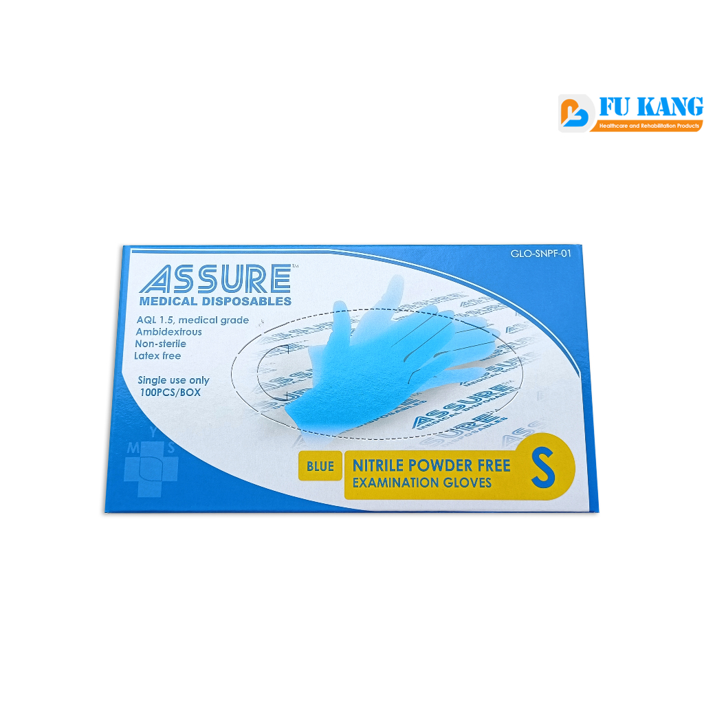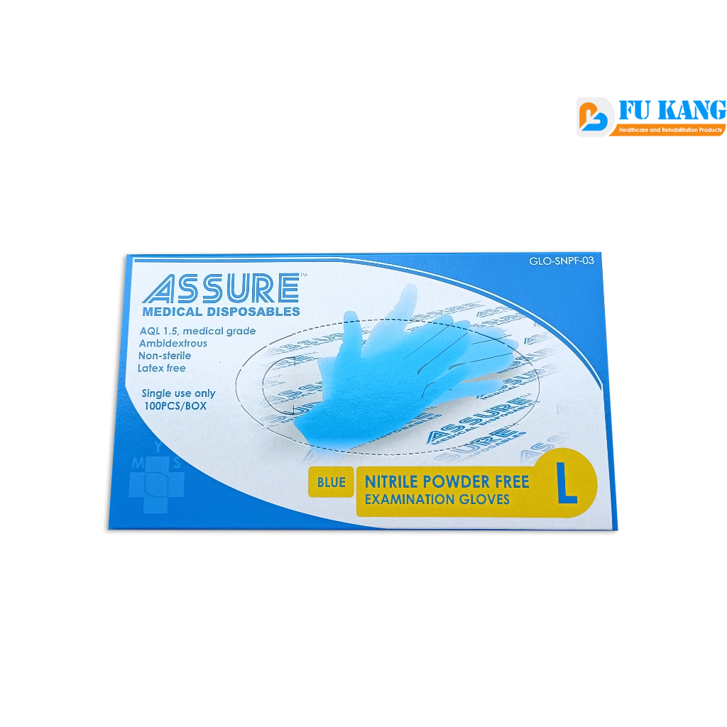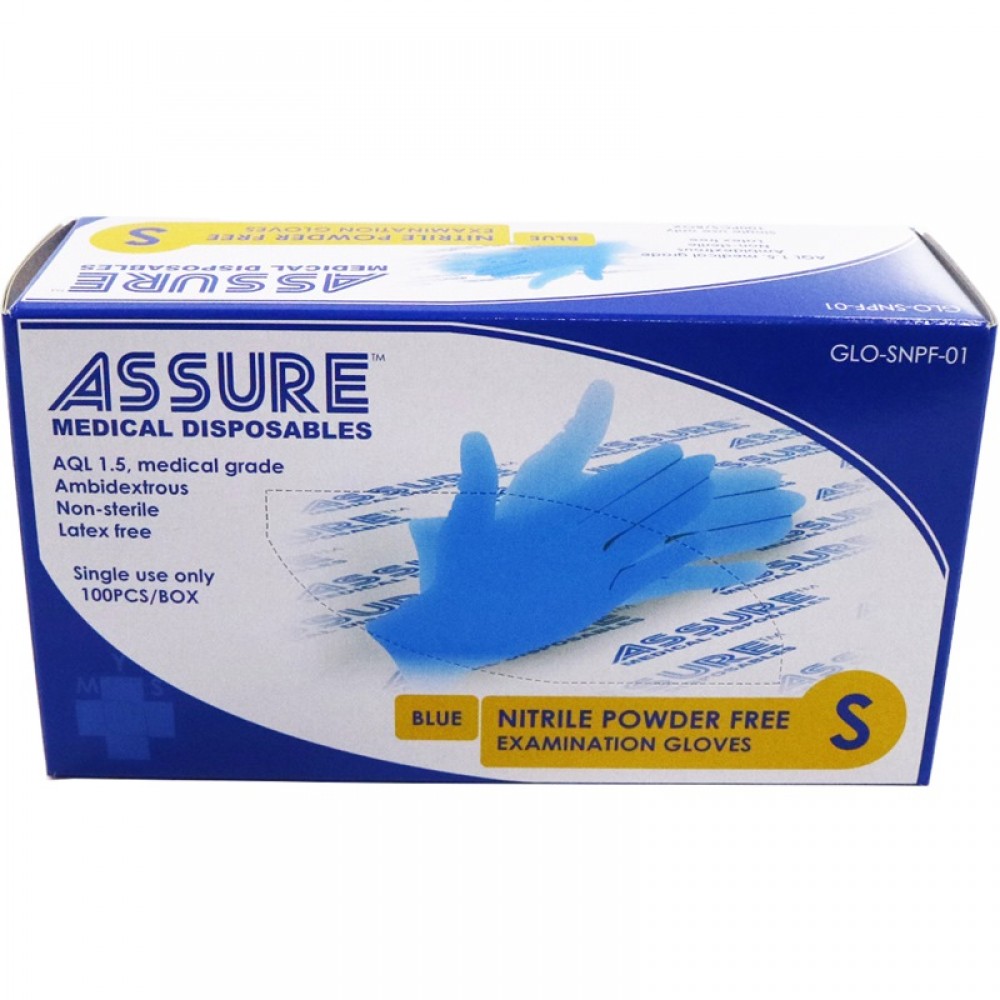 ASSURE Medical Disposable Nitrile Powder Free Gloves Blue (100PC/BOX)