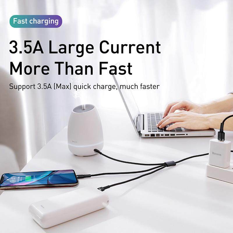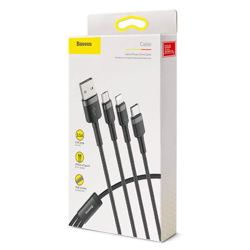 Baseus 3 in 1 USB Cable For iPhone 14 13 12 11 Fast Charging USB Type C Cable For Samsung S20 S10 Xiaomi Huawei Vivo Micro USB Data Cable