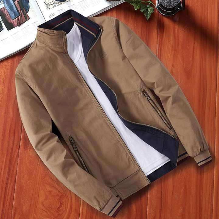 On both sides can be wear counter selection of cotton fabric feel good and comfortable breathable not from the ball does not fade cotton washed Effect ink recognized in the pass Express Double-sided wear middle-aged men's coat jacket autumn Plus-sized thin cotton jacket shirt casual men's Spring and Autumn outerwear