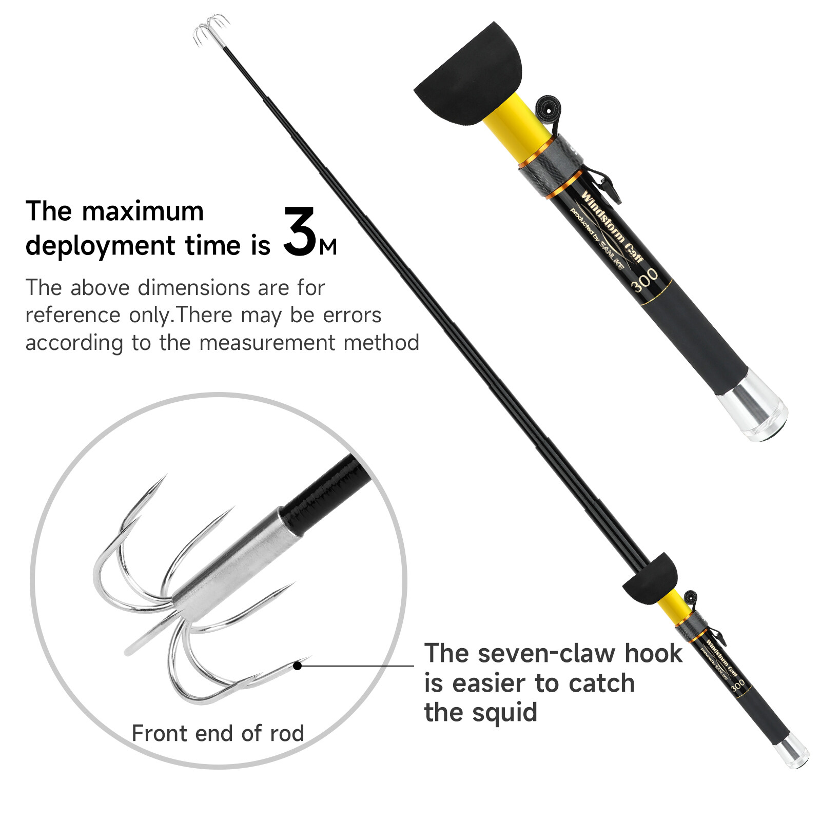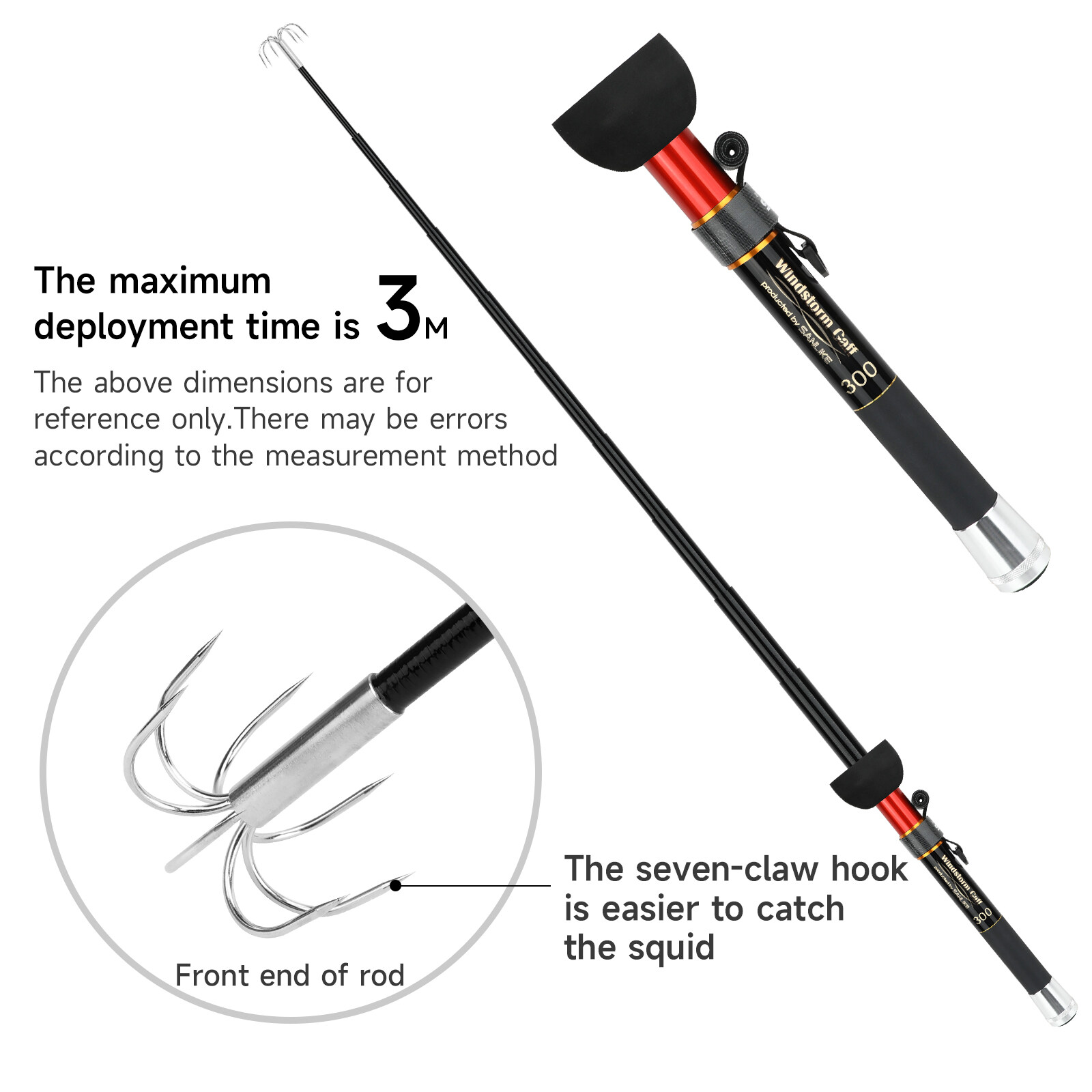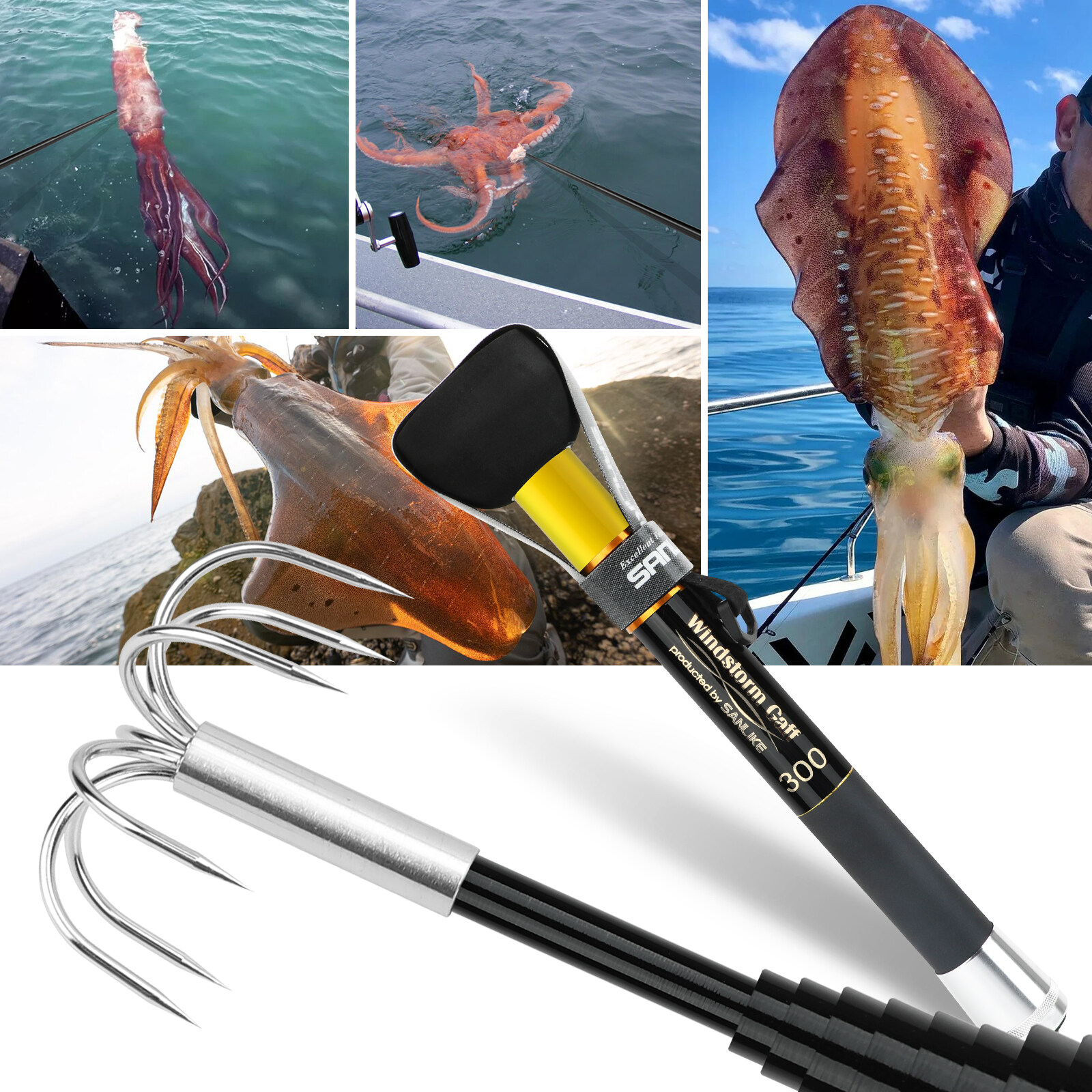 SANLIKE Stainless Steel Squid Gaff Seven Hooks Extendable Contractile Gripper Squids Hook Fishing Gear 3M Retractable squid hook