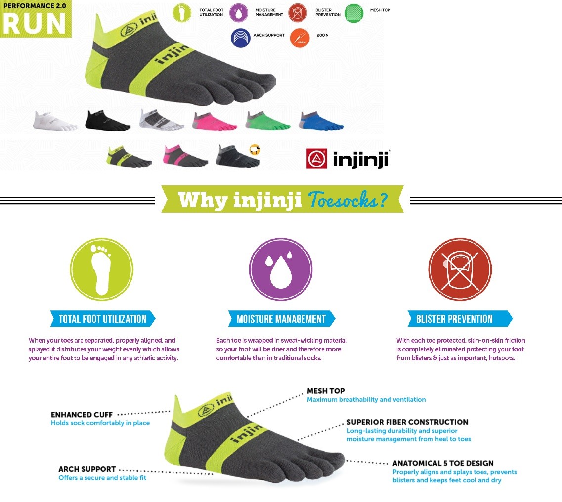 Injinji Run Lightweight Mini-Crew Toe Socks | Unisex | Ultra-thin Running Socks | Arch Support | Blister Prevention