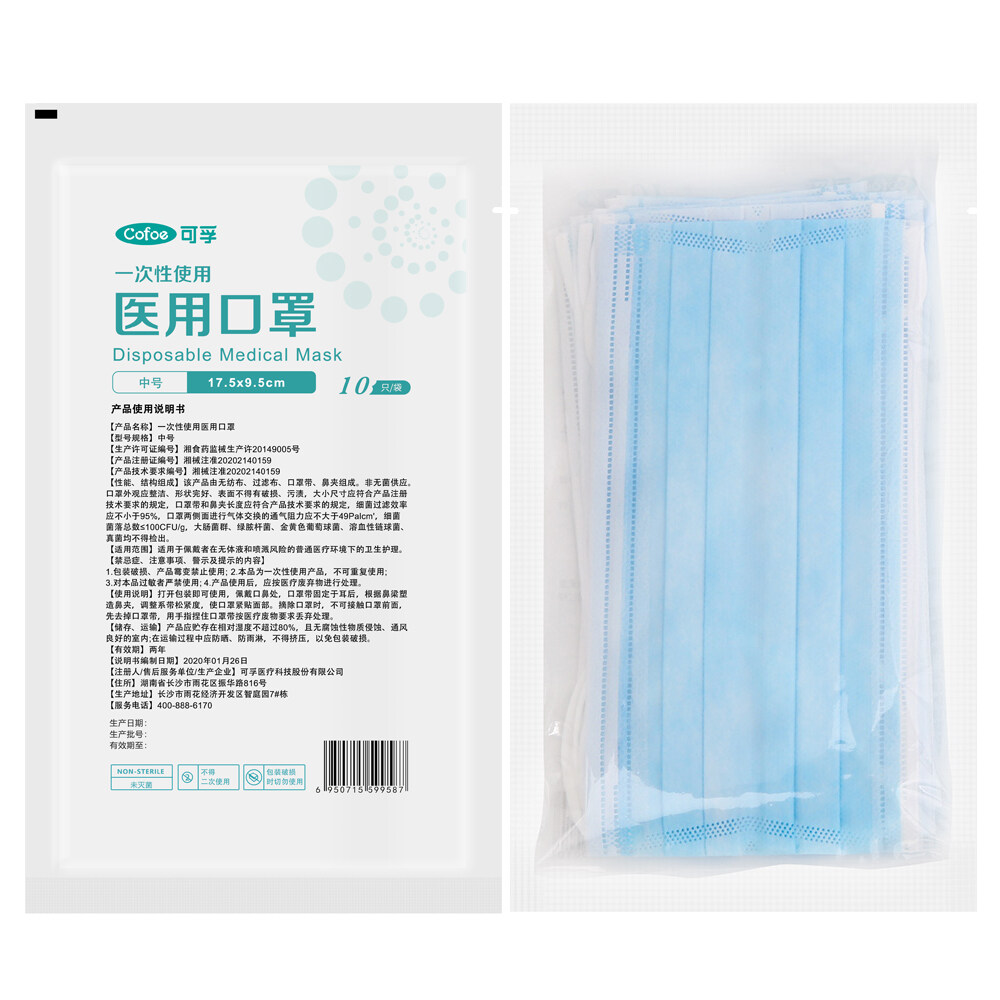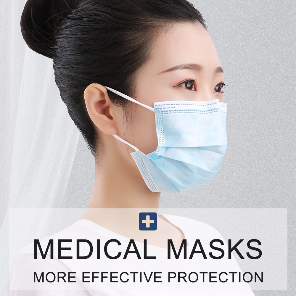 Cofoe 100pcs 3 Ply Disposable Medical Face Mask Anti-virus Anti-fog Non Woven Masks with Elastic Earloop Dustproof 3 Layer Protective Cover Facemask for Adult- CE/MDA approved