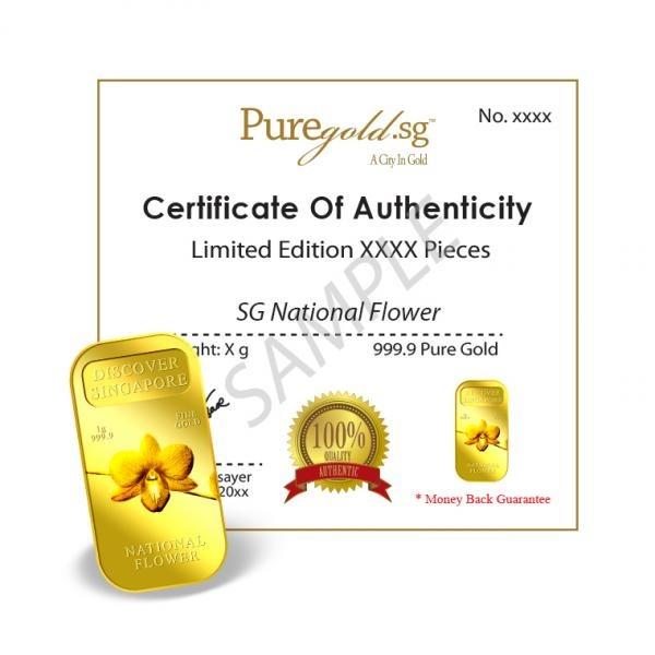 1G Singapore National Flower 999.9 Fine Gold Bar