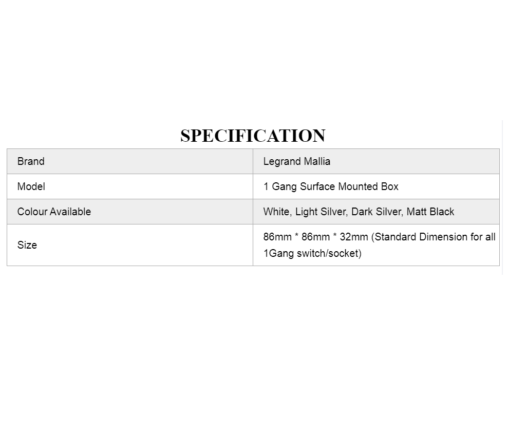 Legrand Mallia Legrand Galion Jovia 1Gang 1G Compatible Surface Mounting Box Black Silver Rose Gold Champagne Switch Socket Expose Box GSE